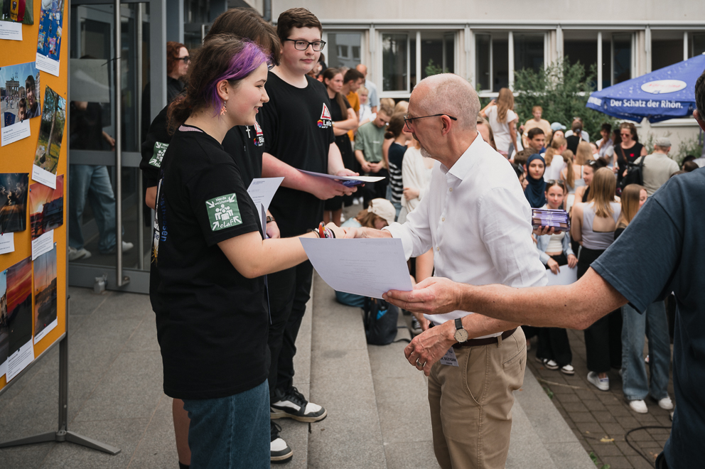 Ein besonders spannender Moment des Tages war die Verleihung des diesjährigen Schulpreises. Mit insgesamt 1000 Euro dotiert und von dem Vorstandsmitglied und ehemaligen Absolventen Hans-Dieter Alt gestiftet, wurde der Preis zum dritten Mal vergeben. Die Preisverleihung ehrte herausragende Leistungen in drei Kategorien, die jeweils mit 333 Euro prämiert wurden: