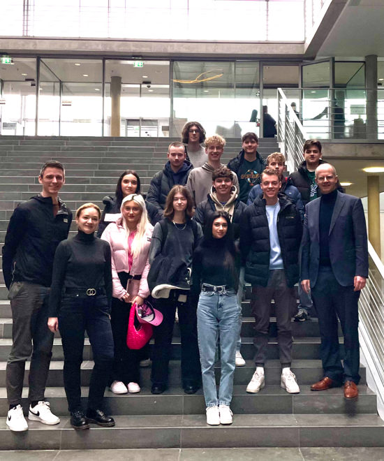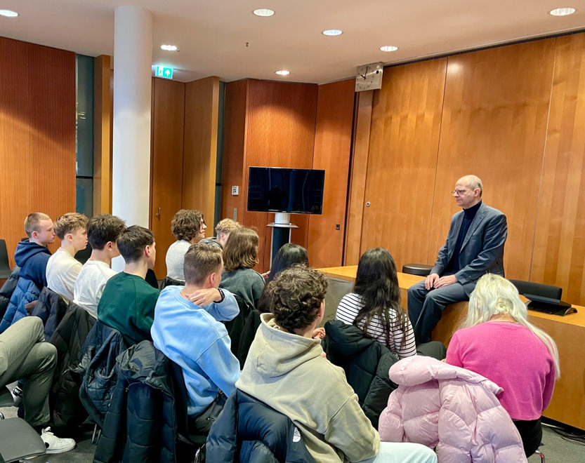 Am Donnerstagmorgen fand unser erster Termin im Paul-Löbe-Haus statt. Hier hatten wir die Möglichkeit dem Fuldaer Abgeordneten Michael Brand ausführlich zu aktuellen politischen Fragestellungen zu interviewen, die wir vorab im PoWi-Unterricht erarbeitet haben (ein Transkript des Interviews wird demnächst auf der Seite unserer Schülerzeitung veröffentlicht werden). Herr Brand beantwortete über die Dauer von eineinhalb Stunden unsere Fragen zu diversen Themen, angefangen bei aktuellen Problemen der Regierungsbildung auf Länderebene, über Wirtschaftspolitik, den Umgang mit Rechtsextremismus, den Verbesserungsvorschlägen der CDU für die Ampel-Koalition bis hin zur Außenpolitik der Zukunft. Unser belebtes Gespräch zur politischen Lage nahm jedoch mehr Zeit in Anspruch, als uns im dafür gebuchten Raum gegeben war, worauf unser Abgeordneter das Gespräch mit uns noch auf der Treppe zum Innenhof des Paul-Löbe-Hauses weiterführte, ein Engagement für das wir trotz teils divergierender Ansichten sehr dankbar sind.