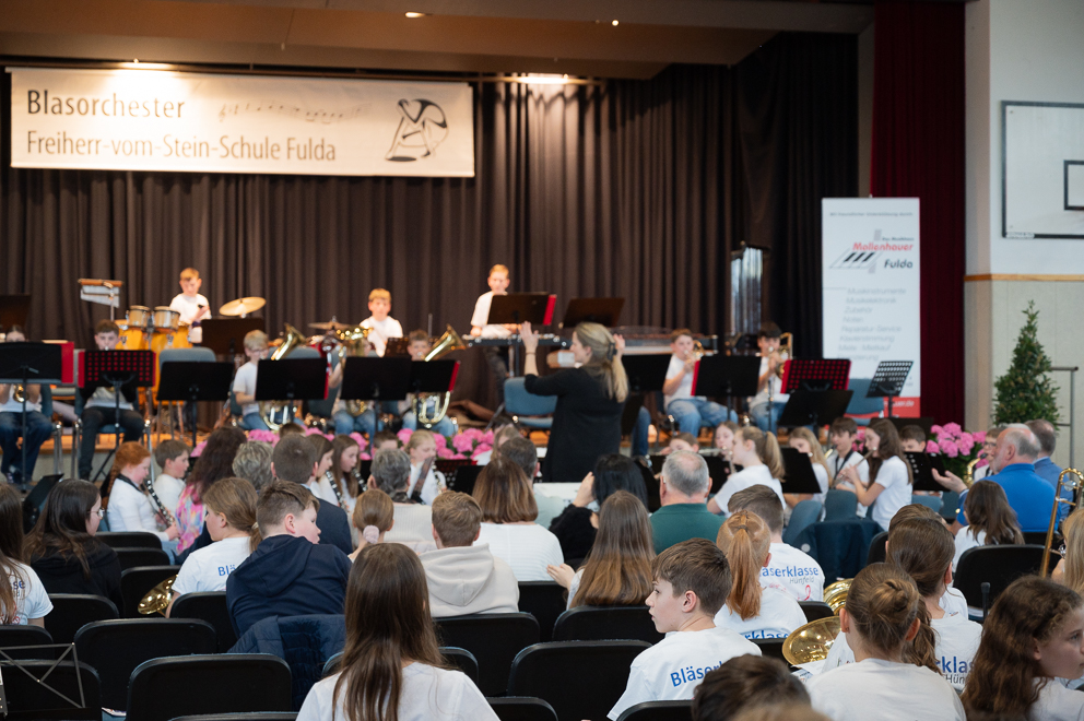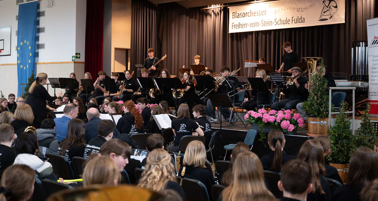 Am Dienstag, 17.03.26, versammelten sich rund 300 junge Musikerinnen und Musiker aus der Region um das 25jährige Jubiläum der Bläserklassen an der Freiherr-vom-Stein-Schule zu feierten.