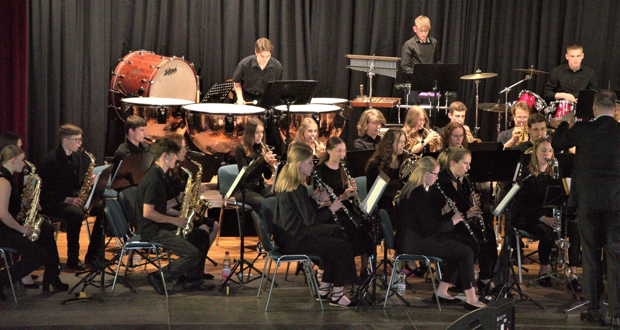Das Blasorchester unter der Leitung von André Müller begleitete die jungen Gesangstalente gewohnt souverän und gab zahlreiche bekannte Musicalmelodien instrumental wieder. Mit stehenden Ovationen verdiente sich das gut gelaunte Publikum zwei weitere Zugaben.