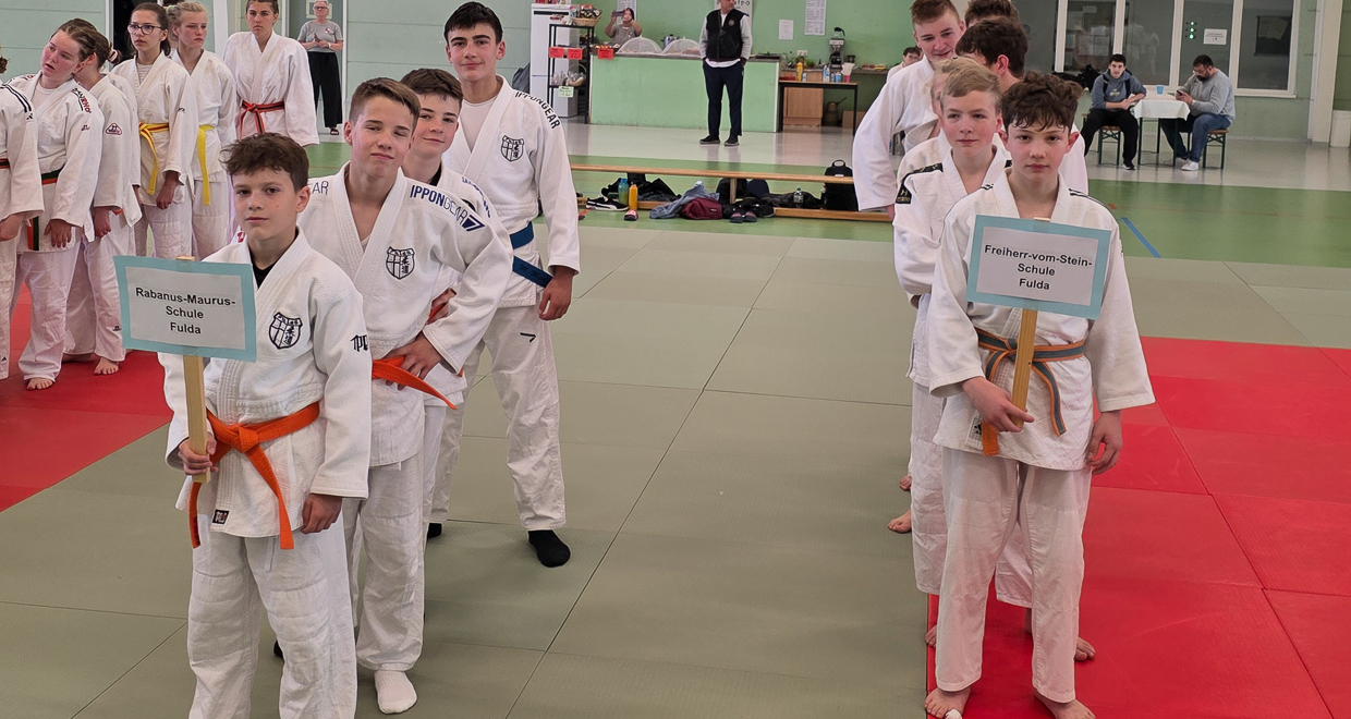 Trotz der knappen Halbfinalniederlage erreichte unser Team gemeinsam mit den Judokameraden des Domgymnasiums Fulda einen hervorragenden 3. Platz auf Landesebene. Wir gratulieren unseren Schülern herzlich zu dieser tollen Leistung!