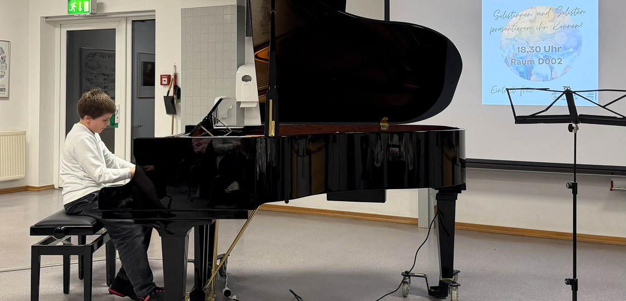 Am Mittwochabend, 25.02.26, verwandelte sich der Musikraum D002 wieder in einen kleinen, aber feinen Konzertsaal, in dem Schülerinnen und Schüler der Klassen 5-13 ihr Können einem interessierten Publikum präsentierten.