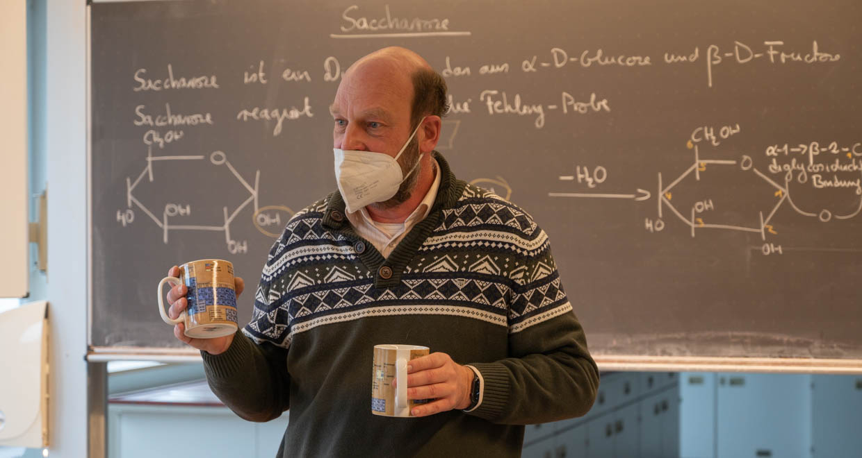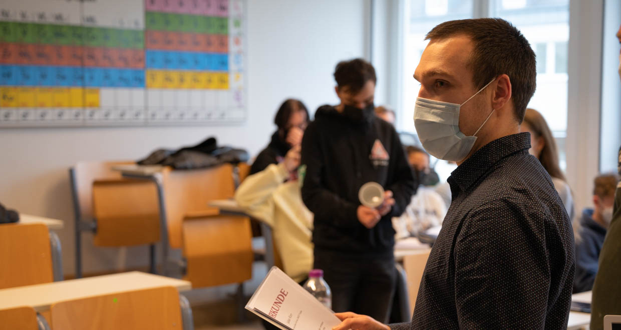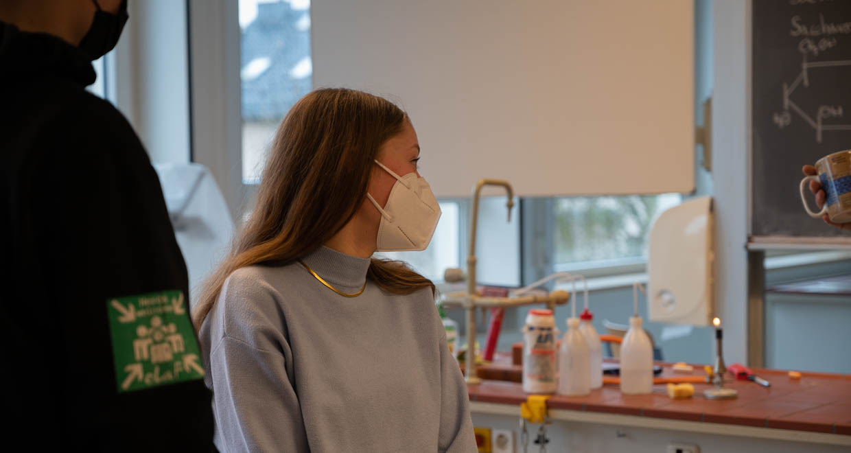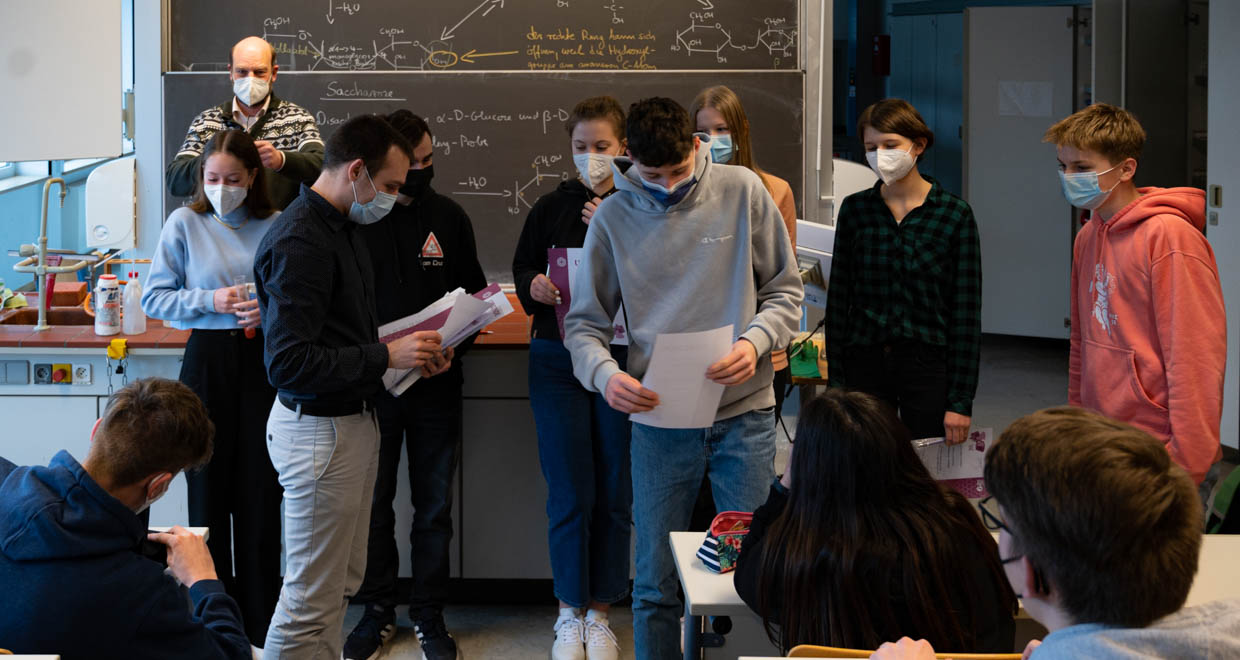 Am 18.02.22 wurde im Labor D103 unserer Schule die Urkunden- und Preisübergabe durchgeführt. Neben einer Ansprache von Herrn Stolz konnte auch der gesamte Chemie-LK (Q2) sowie die Teilnehmenden der „Internationalen ChemieOlympiade“ (IChO) mit Herrn Kramm als Betreuer einen würdigen Rahmen bieten. Als sogenannte „Schnupper-Chemieolympiade des Landes Hessen“ ist „Chemie - die stimmt!“ das ideale Sprungbrett zur IChO und vielleicht werden einige durch die diesjährigen Erfolge von Ida Müller (12E) und Jonas Bug (11D) motiviert, in den nächsten Jahren auch an diesem Oberstufenwettbewerb teilzunehmen.