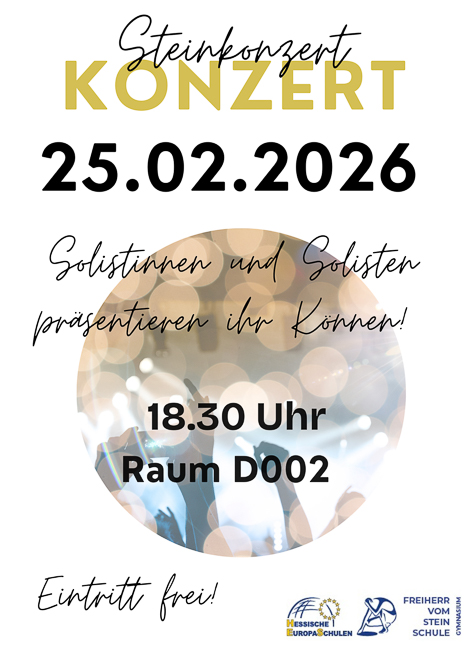 Am Mittwoch, 25. Februar 2026, um 18.30 Uhr in Raum D002 findet unser diesjähriges Steinkonzert statt.