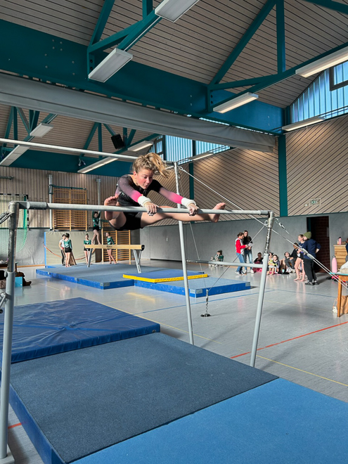 Hinter den überlegenen Siegerinnen aus Bad Hersfeld ging es vor allem auf den Plätzen 2-5 haucheng zu, und die Freiherr-vom-Stein-Schule erreichte in einem Zehntelfinale schließlich Platz 4. Als beste Turnerin konnte sich Maja Rathmann aus der 7b in Szene setzen. Sie zeigte die Höchstwertungen des Teams am Boden, Sprung mit ihrem tollen Überschlag und am Schwebebalken. Nur knapp dahinter landete Leni Antochin aus der 7a, die die Bestwertung der Fuldaer am Stufenbarren erreichte und auch an den anderen Geräten blitzsaubere Übungen zeigte. Das Team wurde zudem von Helene Muche aus der 8e und Jana Hartmann aus der 6a unterstützt.