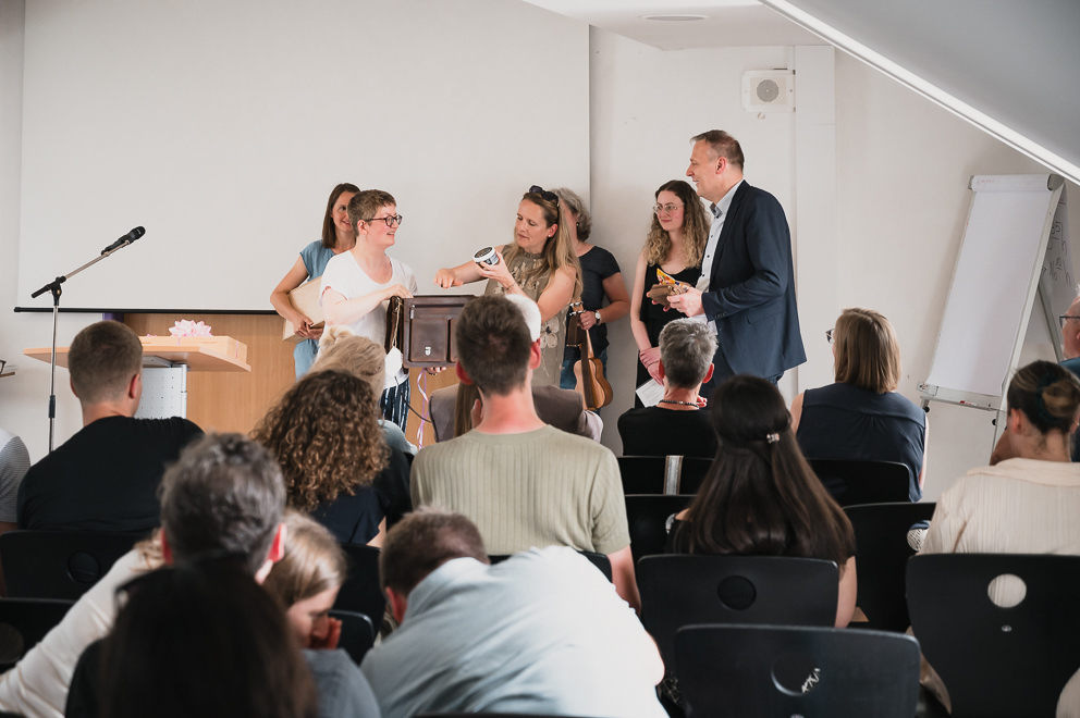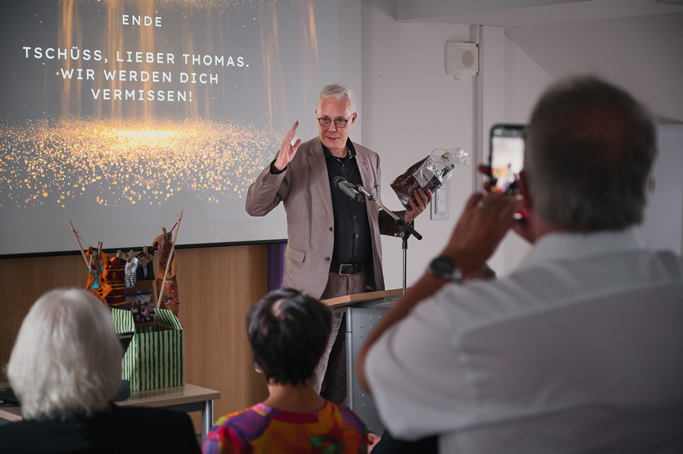 André Müller, der fast 24 Jahre an der Freiherr-vom-Stein-Schule wirkte, tritt eine neue Herausforderung als Schulleiter der Winfriedschule Fulda an. In seiner Ansprache lobte Dr. Ulf Brüdigam Müllers Engagement und seine zahlreichen Beiträge zur Schulentwicklung. Müller war nicht nur Leiter des Blasorchesters und der Bläserklassen, sondern übernahm auch umfassende Leitungsaufgaben, wie die Planung der Musikräume, Pressearbeit und die Erstellung des Ganztagskonzepts.